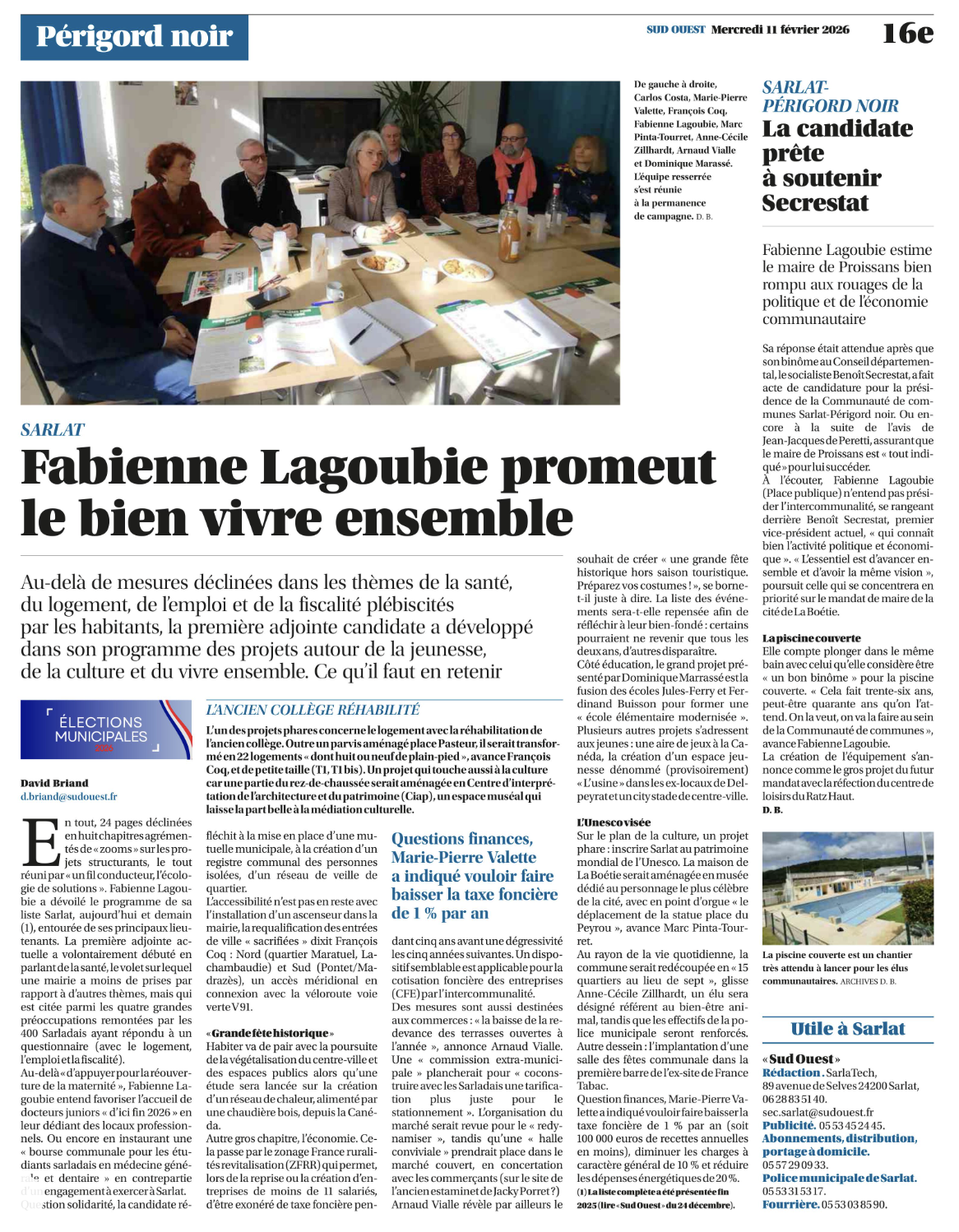 Dans son édition du jour, Sud Ouest Dordogne met en lumière la candidature de Fabienne Lagoubie et l’esprit de notre projet pour Sarlat-La Canéda : le bien vivre ensemble.