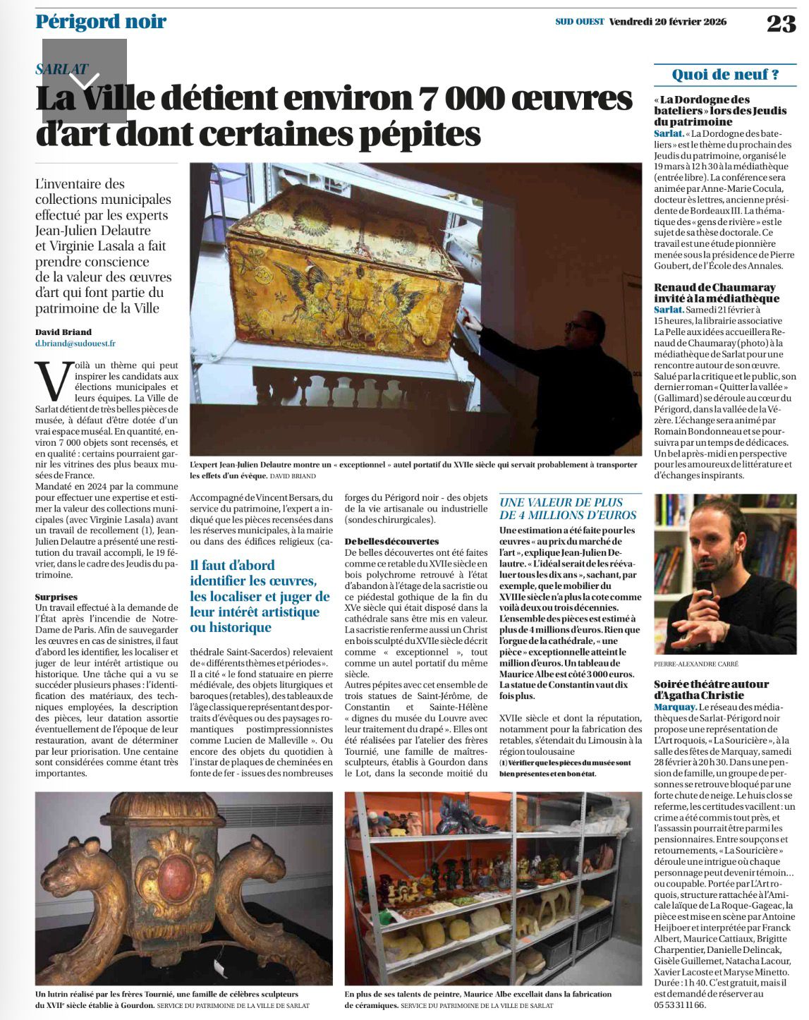 L’article de Sud Ouest consacré aux près de 7 000 œuvres conservées par la Ville met en lumière la richesse exceptionnelle de notre patrimoine et l’enjeu majeur de sa conservation et de sa valorisation.